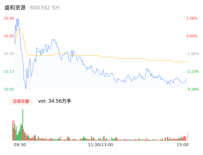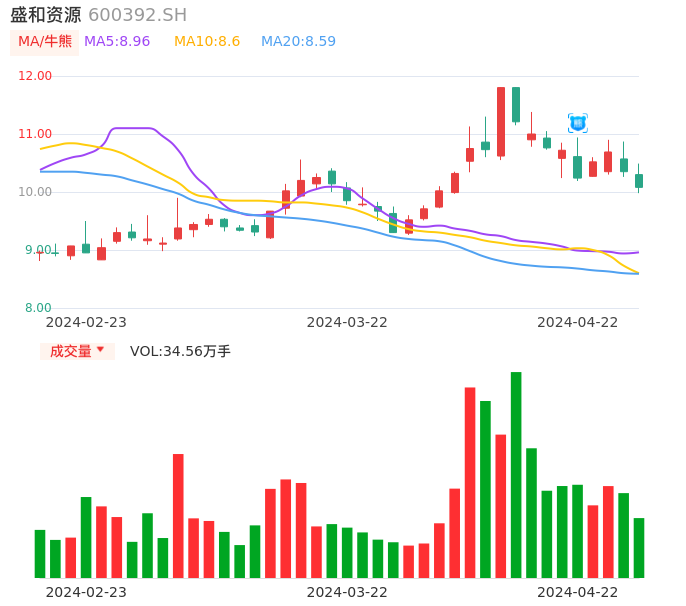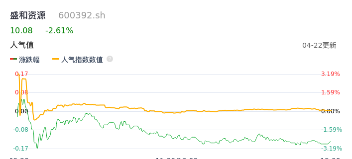 04月22日,盛和资源收报10.08,股价涨幅-2.61%,成交金额3.52亿元,换手率1.97%。