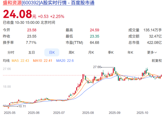 而从市场反应来看,投资者对此次收购及公司未来发展前景普遍看好,自2025年5月15日发布计划收购Ngualla稀土矿的公告以来,其股价已几乎实现翻倍,至10月30日收盘,每股股价为24.08元,对应市值逾420亿元。