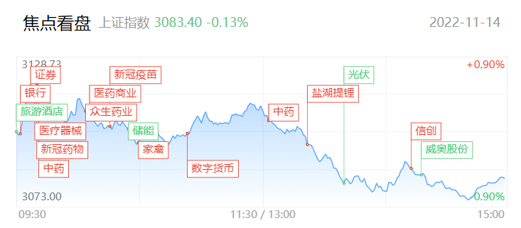 总体上个股跌多涨少,两市超2800只个股下跌。沪深两市今日成交额10763亿,较上个交易日缩量1468亿。板块方面,中药、医药商业、新冠治疗、眼科医疗等板块涨幅居前,机场、供销社、TOPCON电池、盐湖提锂等板块跌幅居前。