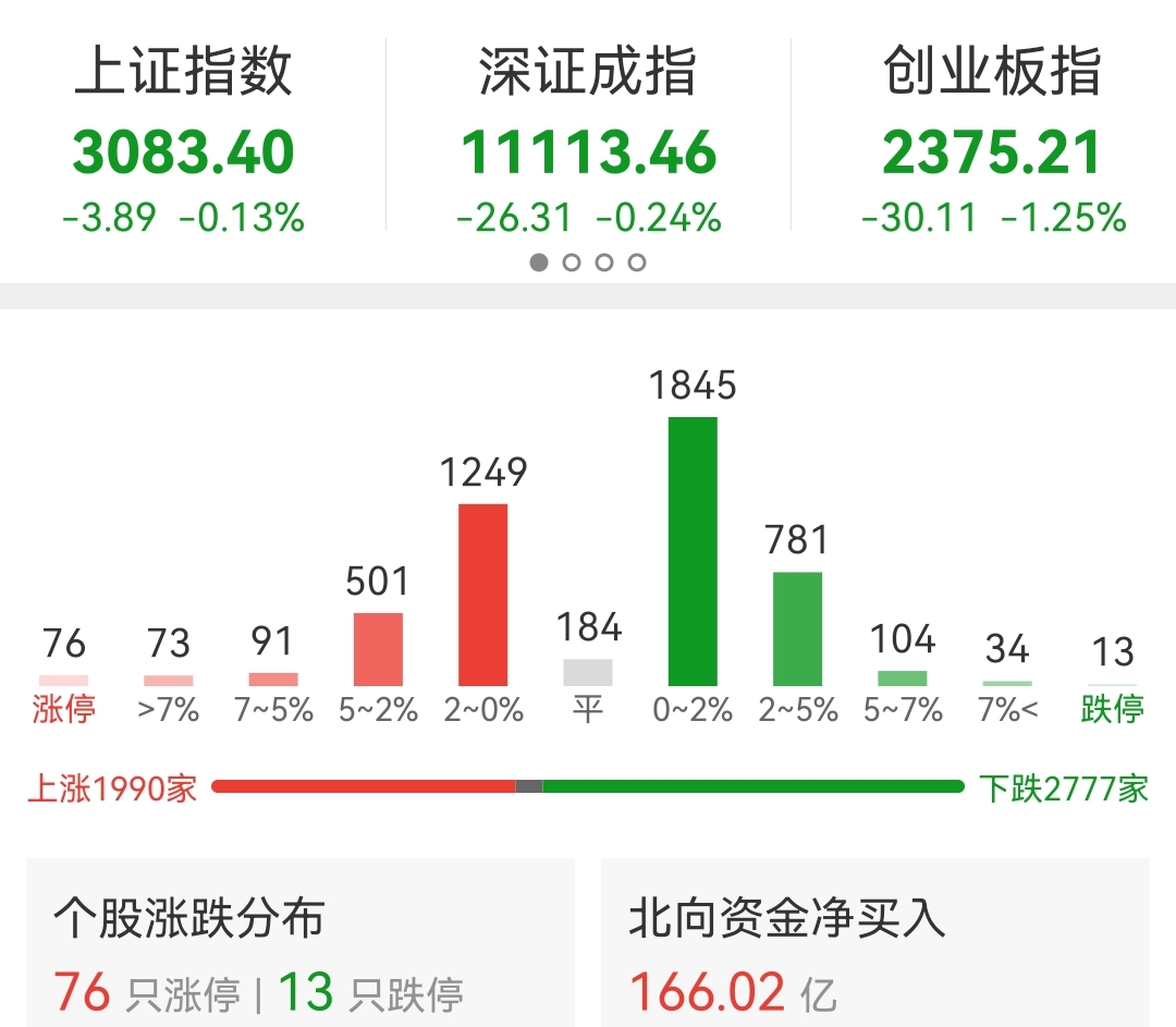 两市个股跌多涨少,两市成交额10763亿,再度突破万亿;北向资金跑步进场,净买入超160亿元。