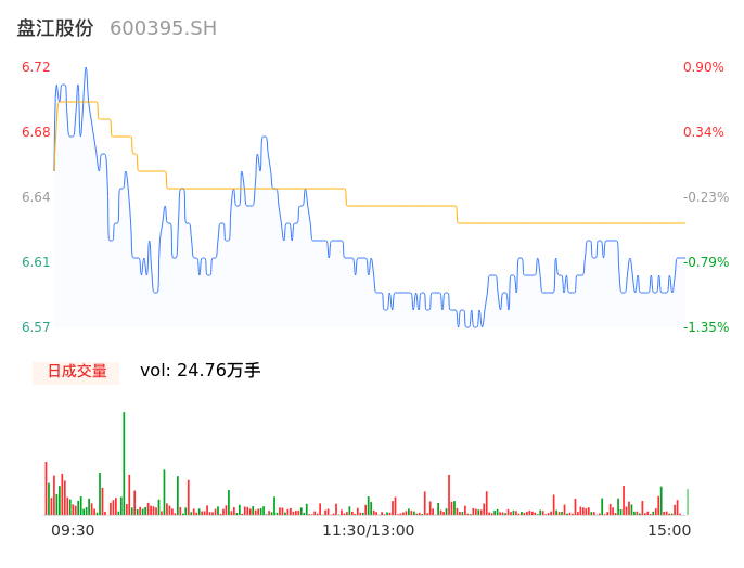 04月18日,盘江股份收报6.60,股价涨幅-0.90%,成交金额1.64亿元,换手率1.16%。