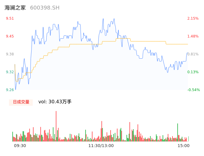 04月15日,海澜之家收报9.37,股价涨幅0.64%,成交金额2.87亿元,换手率0.63%。