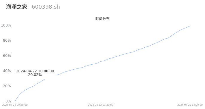 600398海澜之家2024年04月22日成交17.45万手,成交金额1.64亿元,相较昨日缩量8.73万手,换手率0.36%,成交清淡。