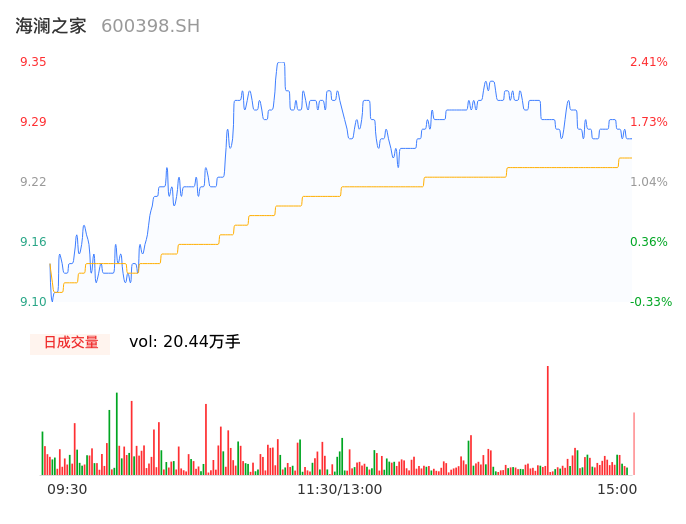 04月12日,海澜之家收报9.31,股价涨幅1.97%,成交金额1.89亿元,换手率0.43%。