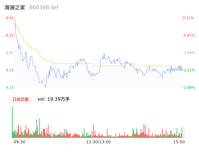 04月25日,海澜之家收报9.19,股价涨幅-2.13%,成交金额1.78亿元,换手率0.40%。