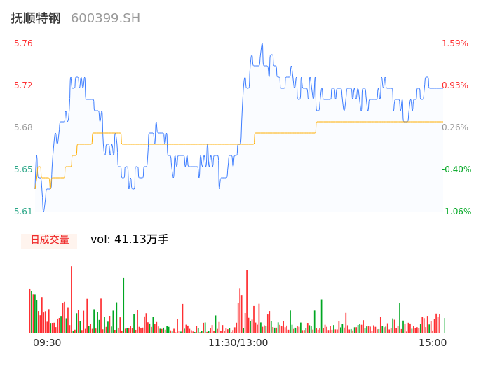 04月19日,抚顺特钢收报5.71,股价涨幅0.71%,成交金额2.34亿元,换手率2.09%。