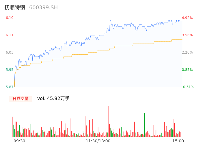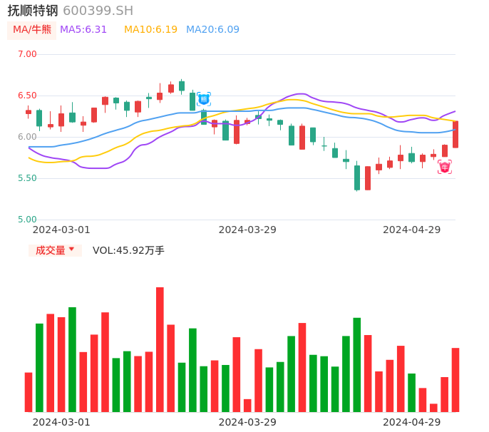 04月29日,抚顺特钢收报6.19,股价涨幅4.92%,成交金额2.80亿元,换手率2.33%。