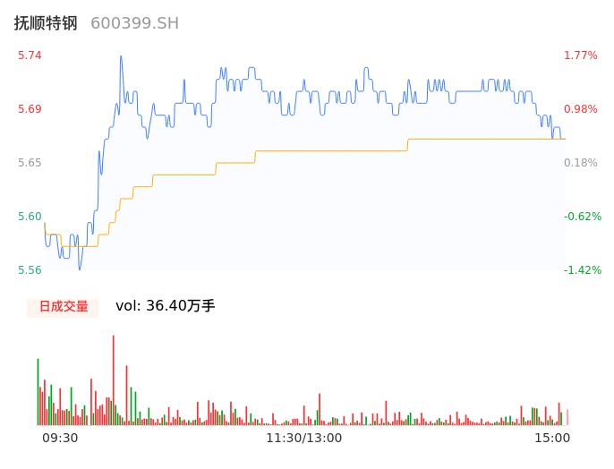04月18日,抚顺特钢收报5.67,股价涨幅0.53%,成交金额2.07亿元,换手率1.85%。