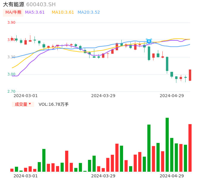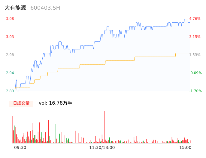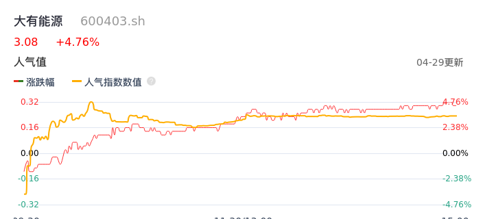 04月29日,大有能源收报3.08,股价涨幅4.76%,成交金额5016.66万元,换手率0.70%。