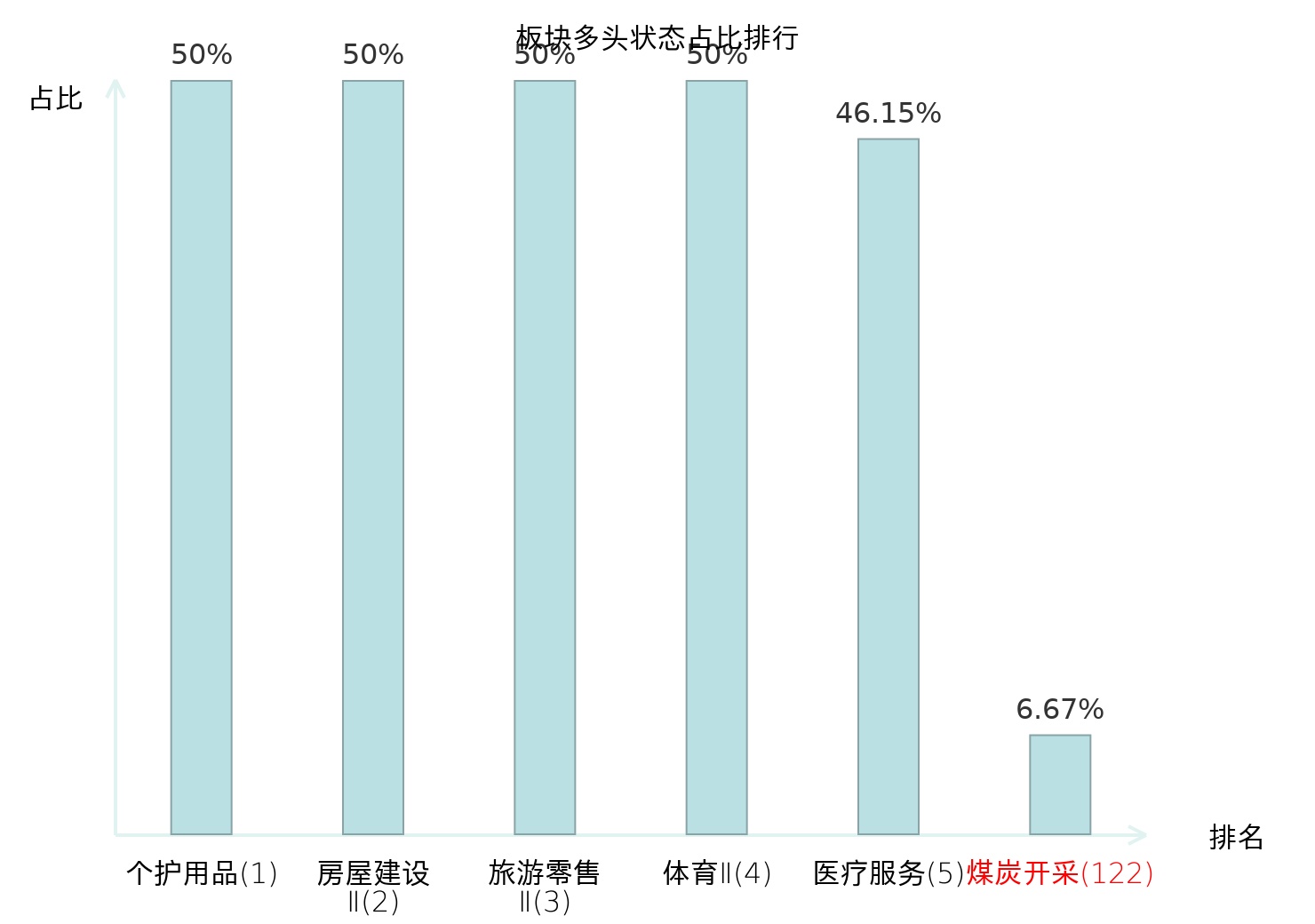 全市场所有行业板块中主力多头状态占比排名中,个护用品板块位居第一。影视院线板块名次提升最快,较昨日上升56位。