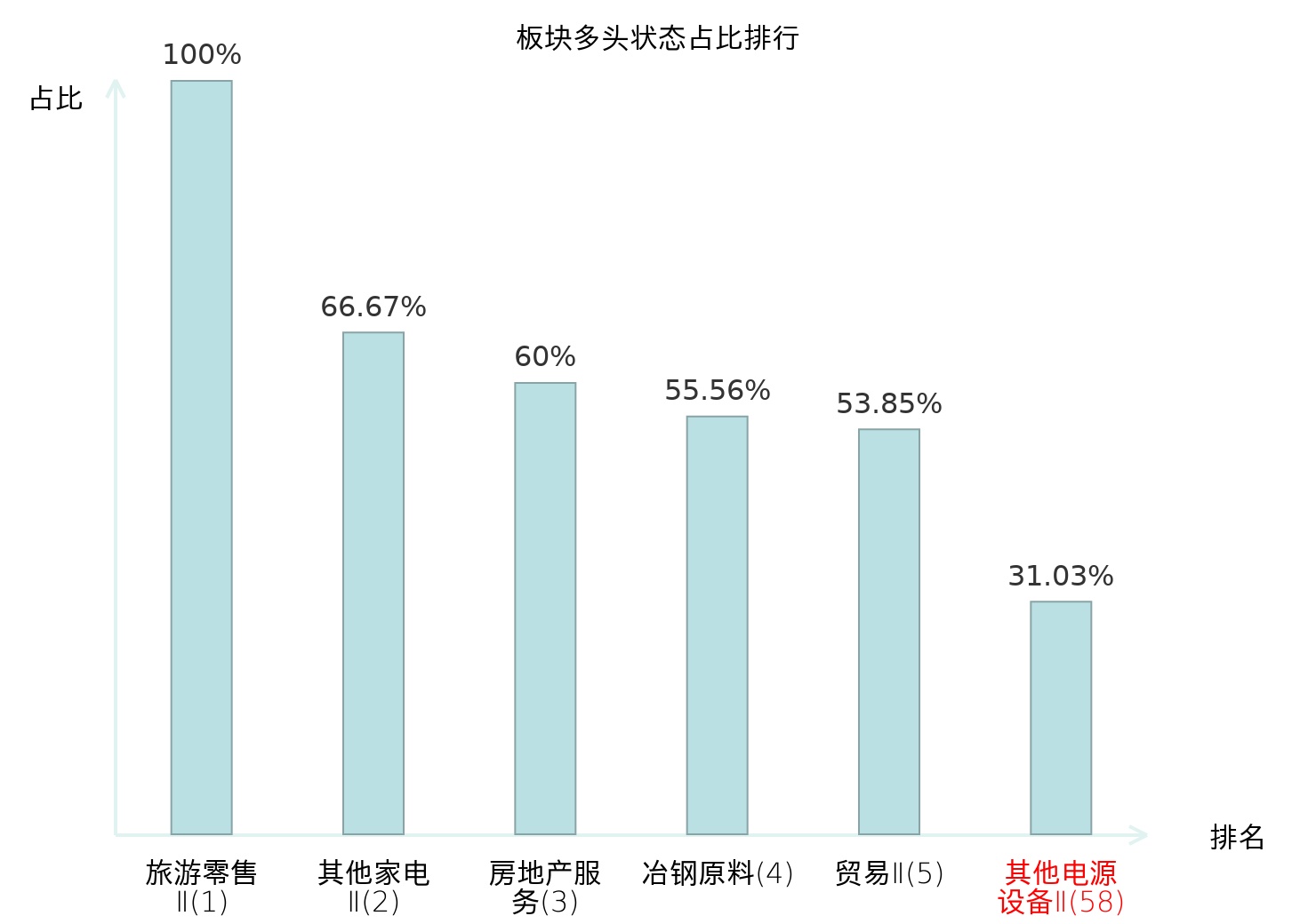 全市场所有行业板块中主力多头状态占比排名中,旅游零售Ⅱ板块位居第一。保险Ⅱ板块名次提升最快,较昨日上升65位。