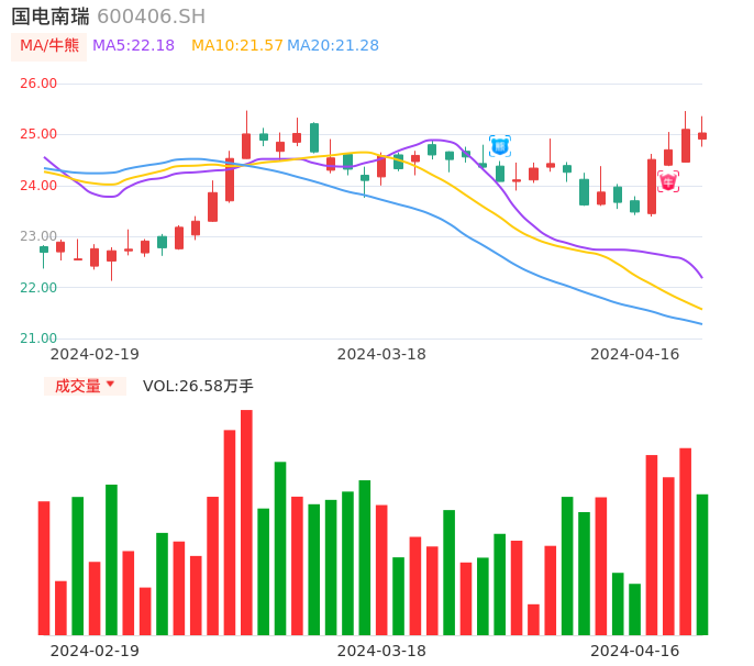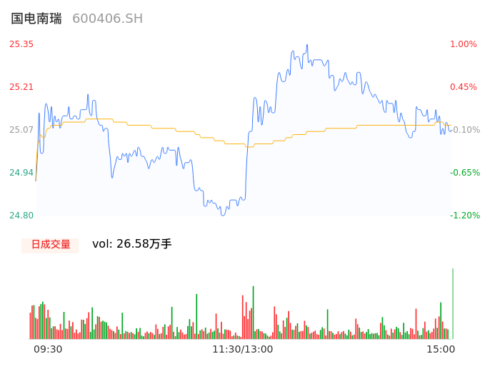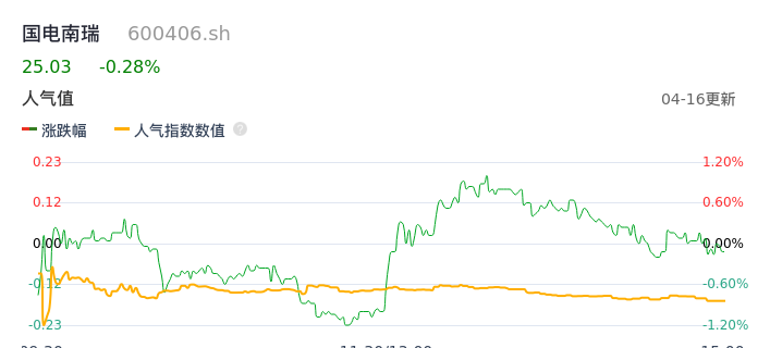 04月16日,国电南瑞收报25.03,股价涨幅-0.28%,成交金额6.67亿元,换手率0.33%。