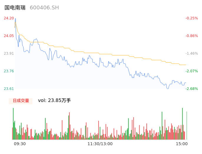 04月03日,国电南瑞收报23.62,股价涨幅-2.64%,成交金额5.68亿元,换手率0.30%。