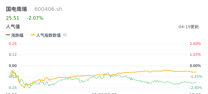 04月19日,国电南瑞收报25.51,股价涨幅-2.07%,成交金额6.33亿元,换手率0.31%。