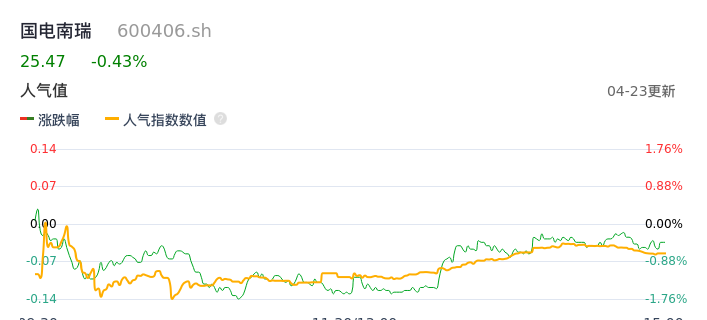 04月23日,国电南瑞收报25.47,股价涨幅-0.43%,成交金额5.78亿元,换手率0.29%。
