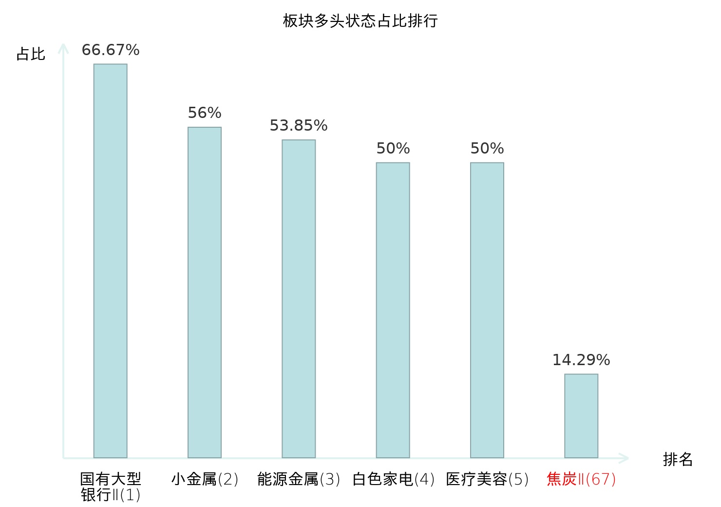 从主力宝信号数据分析,安泰集团所属的焦炭Ⅱ板块中共1只股票处于主力多头状态,主力多头状态占比在全行业中排名第67位,较昨日下降39位;较高的排名表明主力对于该板块整体看多意愿较强,而此次大幅下降可能反映了主力对该板块态度的明显调整;全市场所有行业板块中主力多头状态占比排名中,国有大型银行Ⅱ板块位居第一;酒店餐饮板块名次提升最快,较昨日上升59位;这些变动揭示了不同行业间主力资金配置倾向的变化,为投资者评估板块相对强弱及潜在关注方向提供了客观依据。