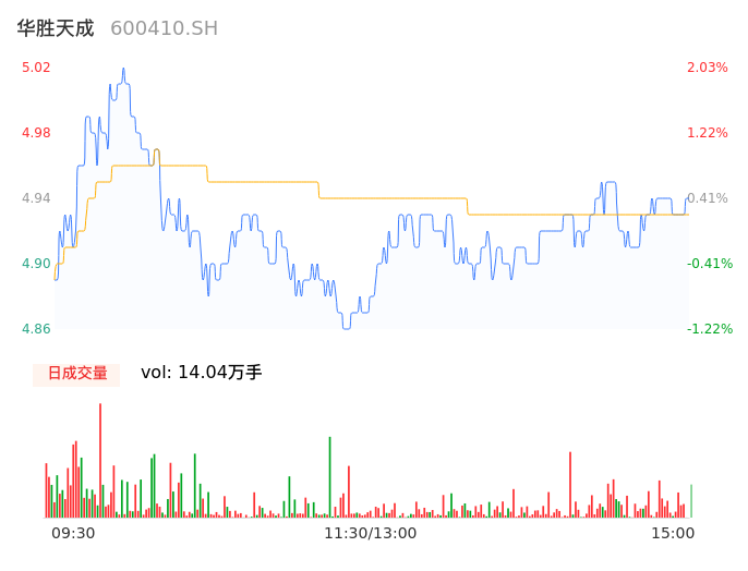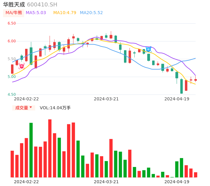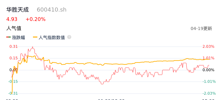 04月19日,华胜天成收报4.93,股价涨幅0.20%,成交金额6921.95万元,换手率1.28%。