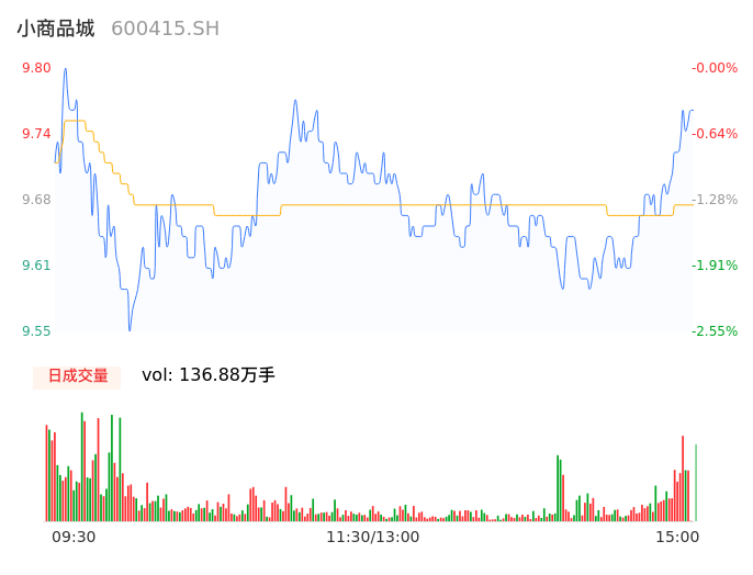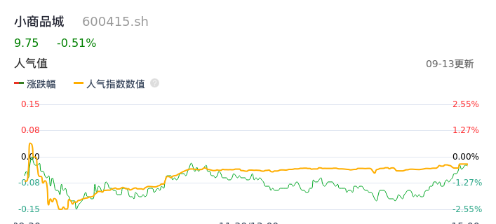 09月13日,小商品城收报9.75,股价涨幅-0.51%,成交金额13.24亿元,换手率2.51%。