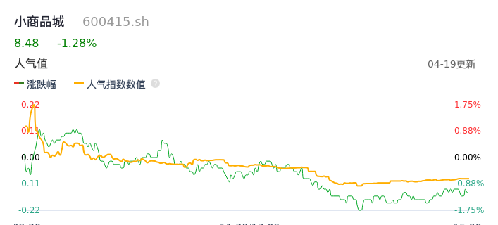 04月19日,小商品城收报8.48,股价涨幅-1.28%,成交金额3.12亿元,换手率0.67%。