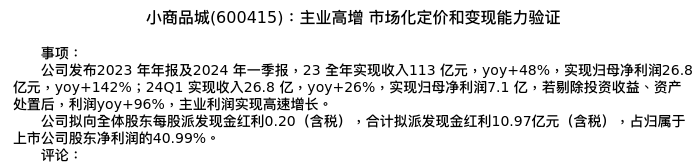 值得注意的是:2024年04月华创证券的王薇娜分析师,首次发布关于小商品城的研究报告,标题为:小商品城(600415):主业高增 市场化定价和变现能力验证。