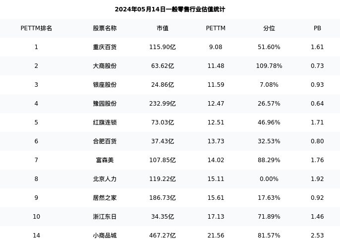 从估值角度看:小商品城最新市盈率PETTM为21.56,在行业内排名14/62,处于81.57分位。