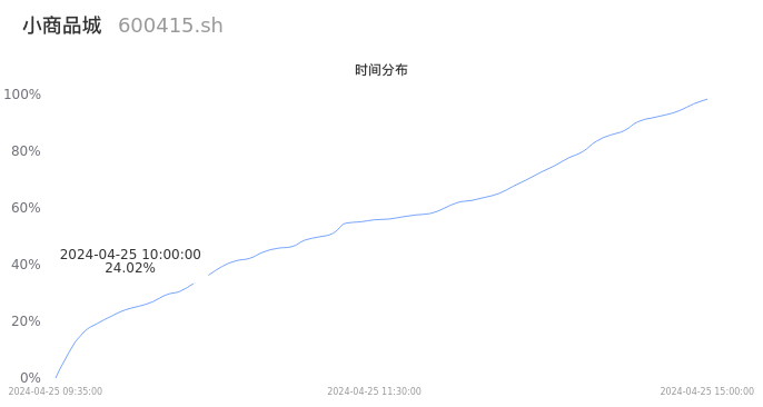 600415小商品城2024年04月25日成交28.55万手,成交金额2.33亿元,相较昨日缩量4157手,换手率0.52%,成交清淡。