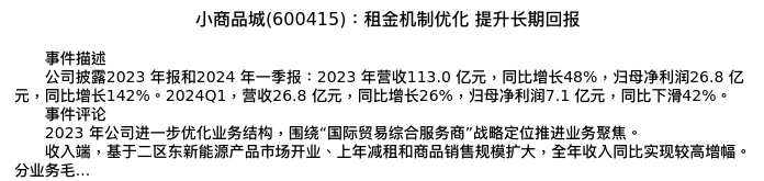 值得注意的是:2024年04月长江证券的李锦/罗祎/陈佳/张彦淳分析师,首次发布关于小商品城的研究报告,标题为:小商品城(600415):租金机制优化 提升长期回报。