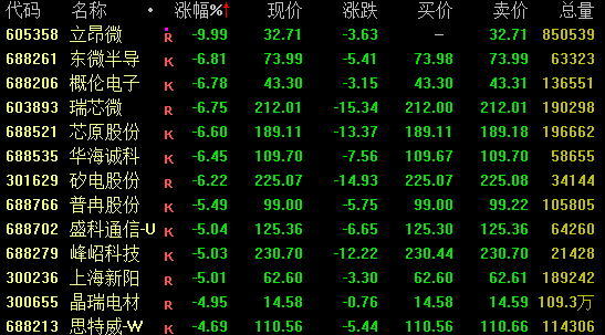 半导体板块今日回落走低,截至收盘,立昂微跌停,东微半导、概伦电子、瑞芯微、芯原股份等跌超6%。