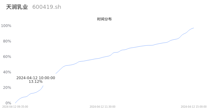 600419天润乳业2024年04月12日成交3.85万手,成交金额3846.24万元,相较昨日放量7074手,换手率1.20%,成交清淡。