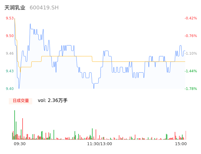 04月19日,天润乳业收报9.48,股价涨幅-0.94%,成交金额2233.70万元,换手率0.74%。