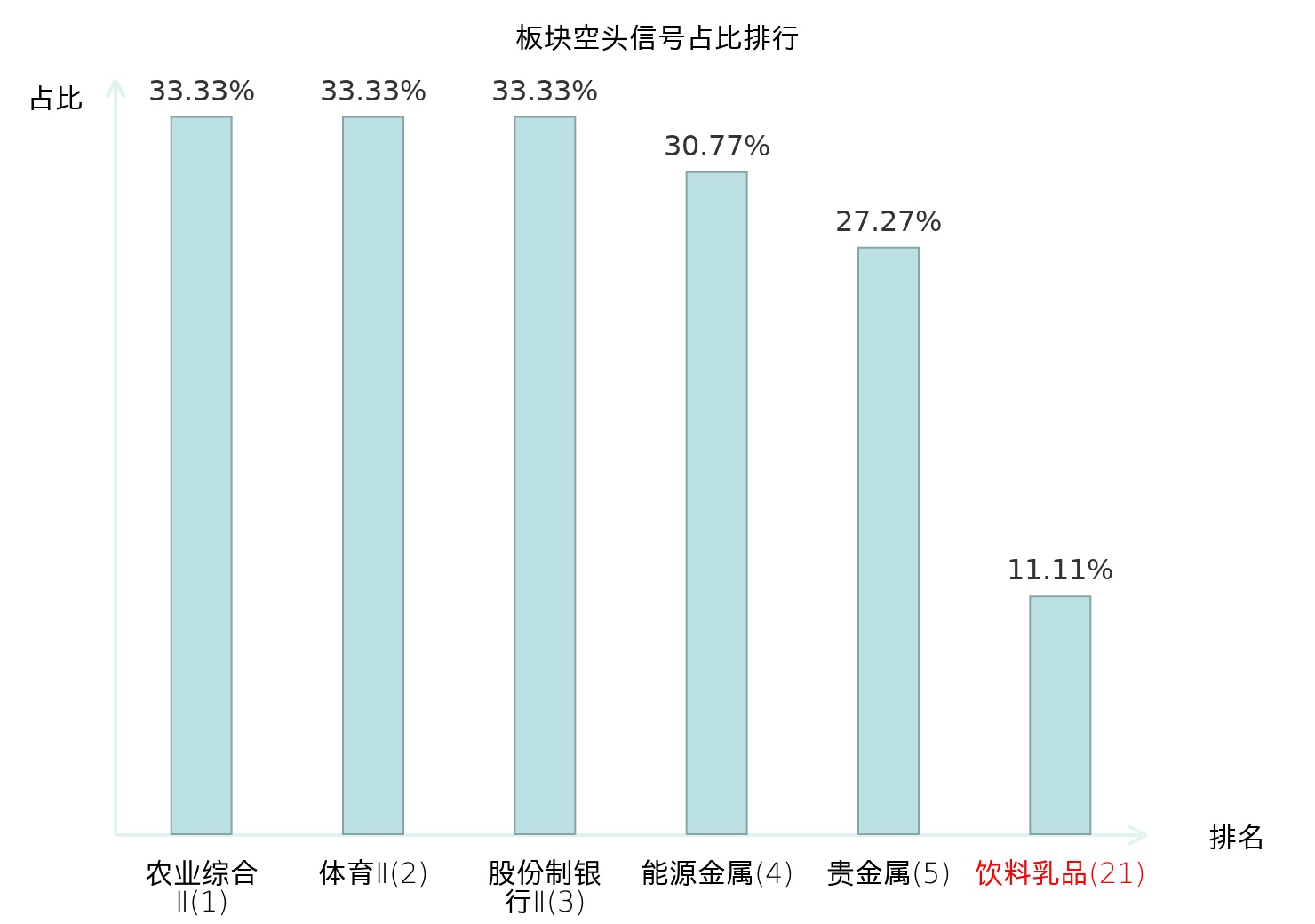 全市场所有行业板块中主力空头信号占比排名中,农业综合Ⅱ板块位居第一。出版板块名次提升最快,较昨日上升115位。