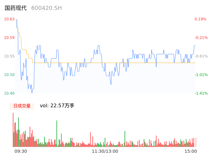 04月29日,国药现代收报10.57,股价涨幅-0.38%,成交金额2.38亿元,换手率1.89%。