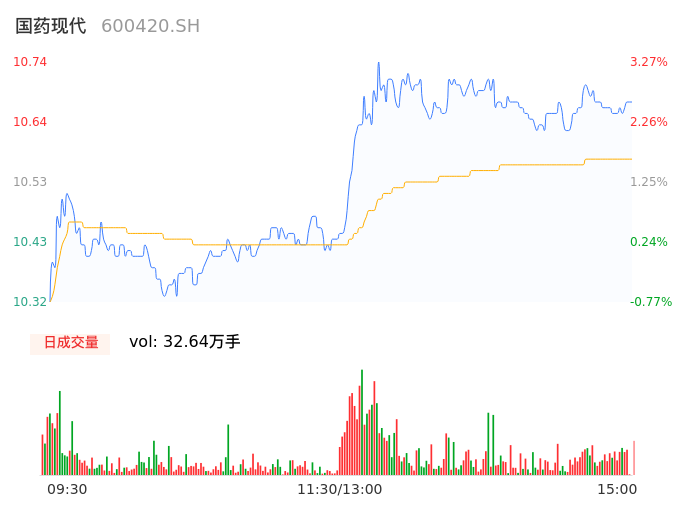 04月25日,国药现代收报10.68,股价涨幅2.69%,成交金额3.45亿元,换手率2.73%。
