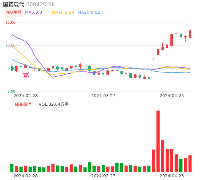 国药现代牛熊点指标分析报告-20240425