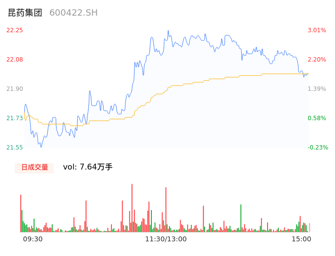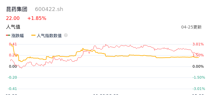 04月25日,昆药集团收报22.00,股价涨幅1.85%,成交金额1.68亿元,换手率1.01%。