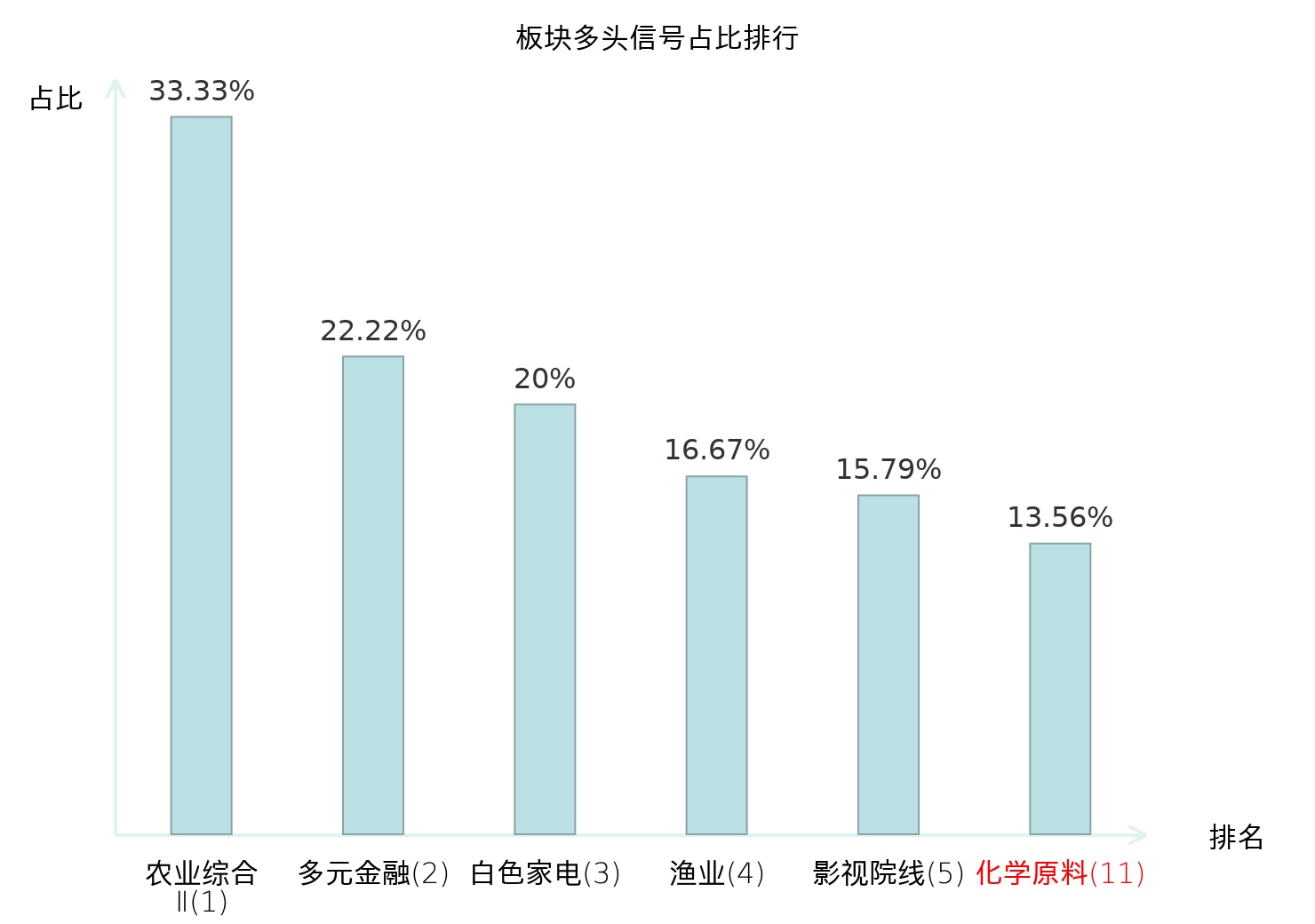 从主力宝信号数据分析,柳化股份所属的化学原料板块中共8只股票发出主力多头信号,主力多头信号占比在全行业中排名第11位,较昨日上升45位;较高的排名表明主力对于该板块整体看多意愿较强,此次排名显著上升反映出主力对该板块态度趋于积极;全市场所有行业板块中主力多头信号占比排名中,农业综合Ⅱ板块位居第一;农业综合Ⅱ板块名次提升最快,较昨日上升127位;这些变动揭示了不同行业间主力资金动向的结构性变化,为投资者判断板块相对强度及潜在关注方向提供了客观依据。