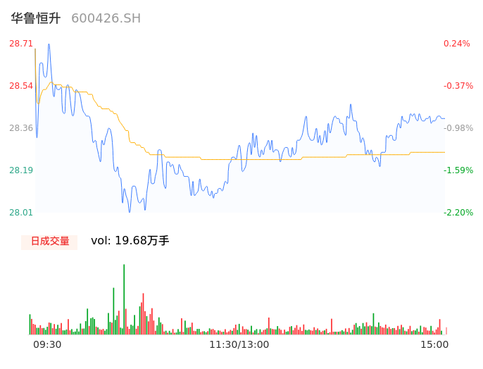 04月26日,华鲁恒升收报28.40,股价涨幅-0.84%,成交金额5.56亿元,换手率0.93%。