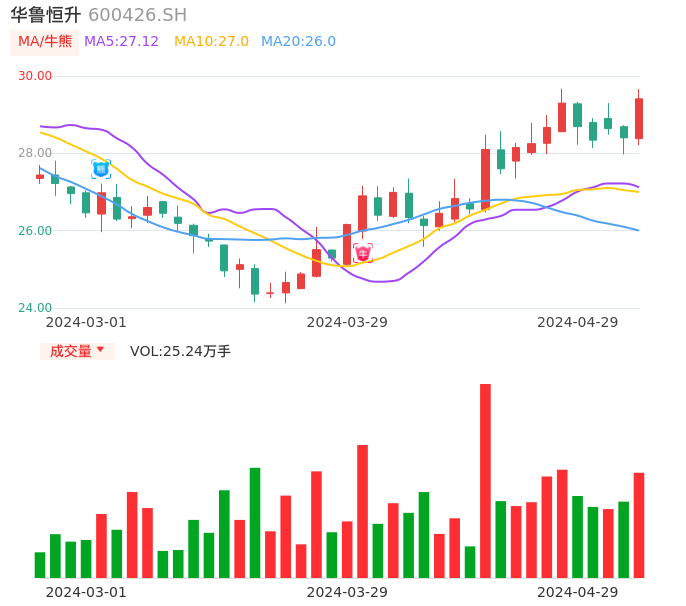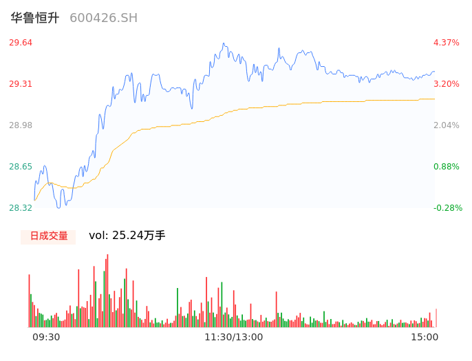 04月29日,华鲁恒升收报29.41,股价涨幅3.56%,成交金额7.37亿元,换手率1.19%。