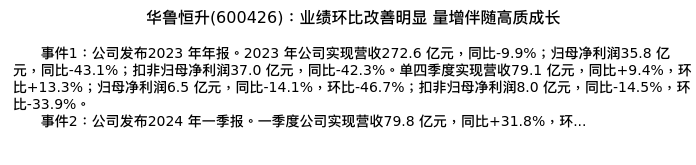 值得注意的是:2024年04月中泰证券的孙颖分析师,首次发布关于华鲁恒升的研究报告,标题为:华鲁恒升(600426):业绩环比改善明显 量增伴随高质成长。