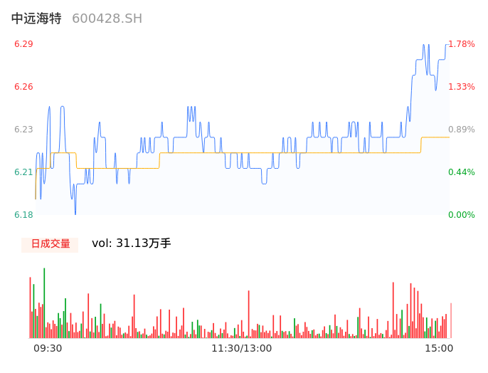 04月24日,中远海特收报6.29,股价涨幅1.78%,成交金额1.94亿元,换手率1.45%。