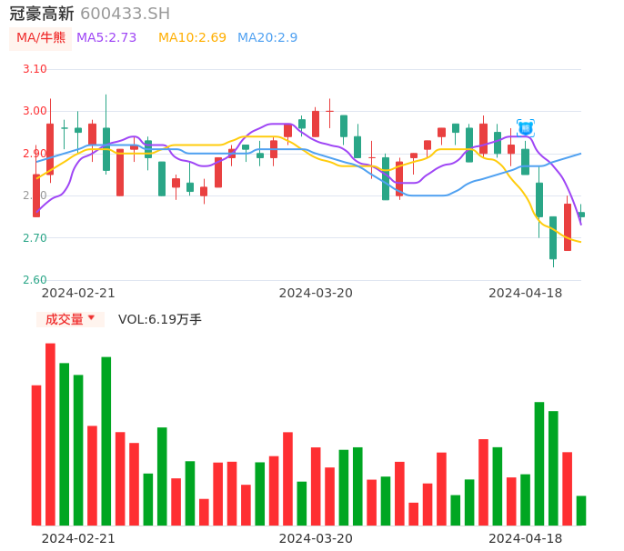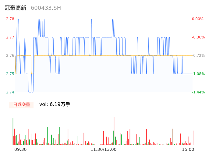 04月18日,冠豪高新收报2.75,股价涨幅-1.08%,成交金额1710.18万元,换手率0.43%。