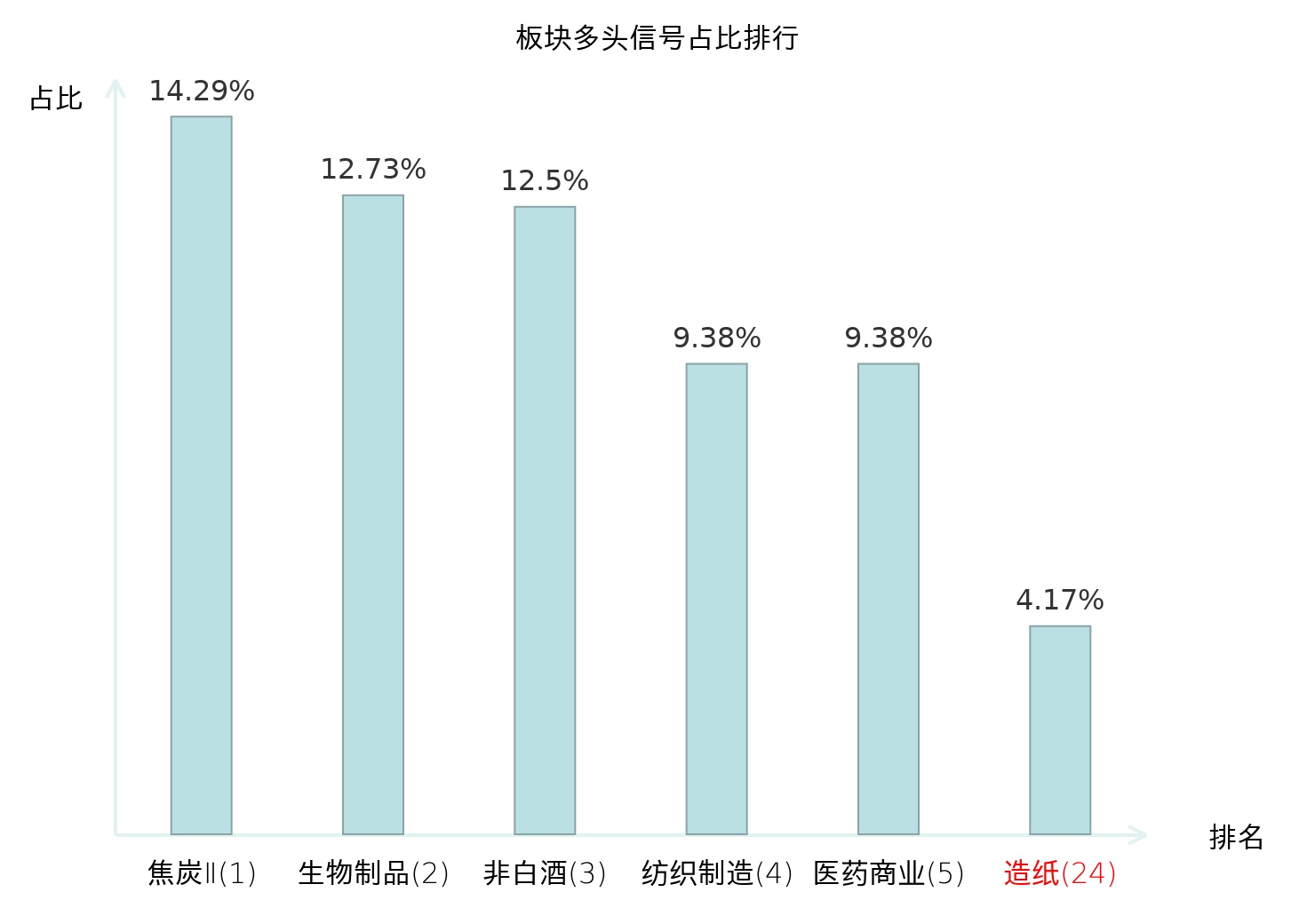 全市场所有行业板块中主力多头信号占比排名中,焦炭Ⅱ板块位居第一。焦炭Ⅱ板块名次提升最快,较昨日上升120位。