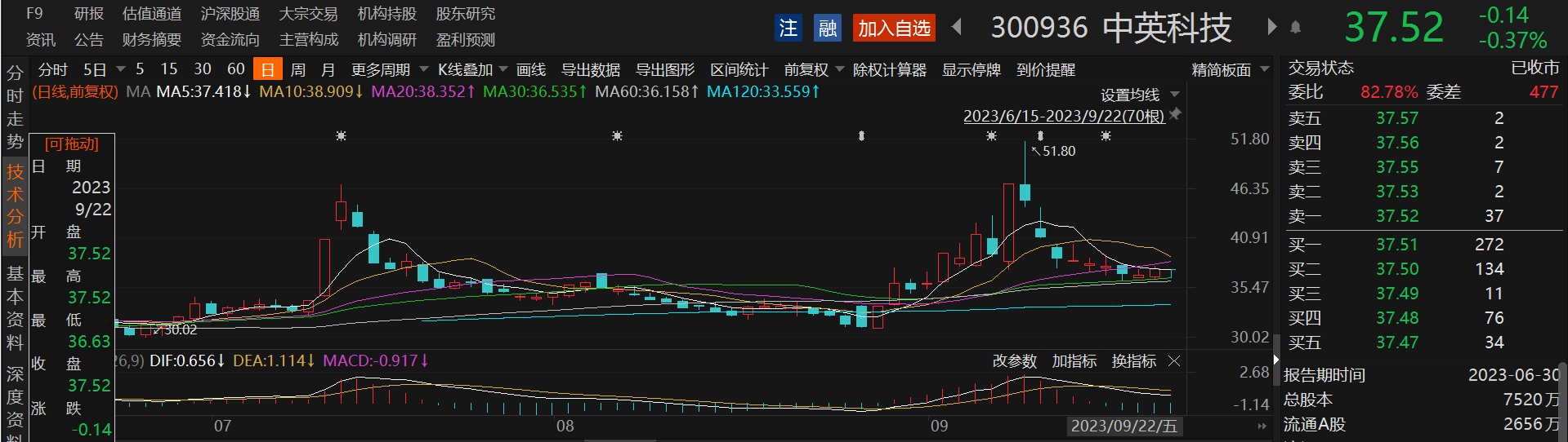 中英科技的ZYF-D型产品可应用于卫星导航等领域,公司产品ZYF-6000系列高频覆铜板可以应用于全球定位卫星天线、移动通信系统等领域。公司相关人士近期在接受媒体采访时表示,目前公司未与华为有合作,其主要提供高频覆铜板这样的基材给下游PCB公司,至于他们供货给谁并不了解。盘面上看,中英科技自8月29日至9月11日期间股价累计最大涨幅66.88%,但随后亦展开快速回调,高位累计最大跌幅29.73%。