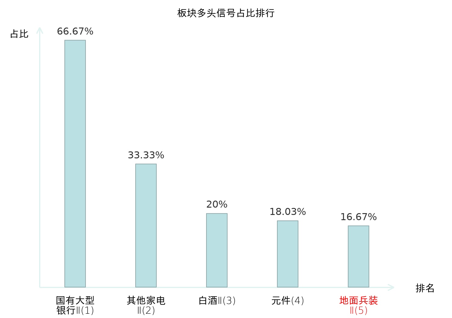 全市场所有行业板块中主力多头信号占比排名中,国有大型银行Ⅱ板块位居第一。其他家电Ⅱ板块名次提升最快,较昨日上升127位。