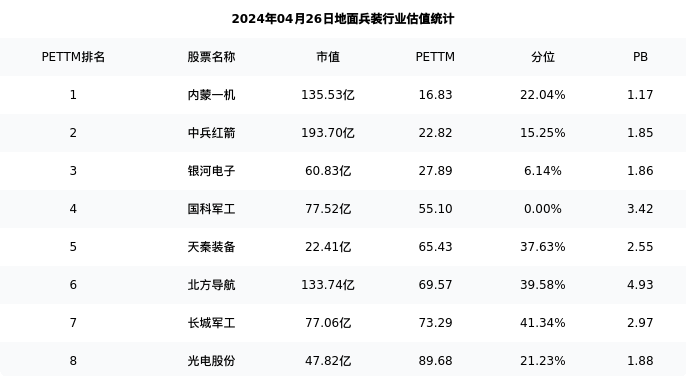 从估值角度看:北方导航最新市盈率PETTM为69.57,在行业内排名6/12,处于39.58分位。