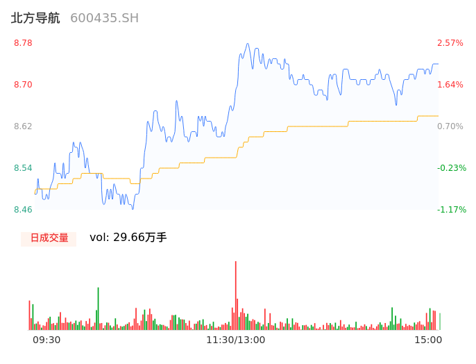 04月19日,北方导航收报8.73,股价涨幅1.99%,成交金额2.56亿元,换手率1.98%。