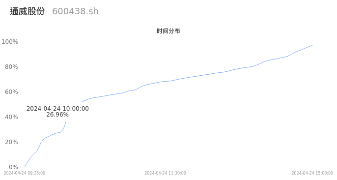 600438通威股份2024年04月24日成交54.20万手,成交金额11.88亿元,相较昨日放量29.20万手,换手率1.20%,成交清淡。