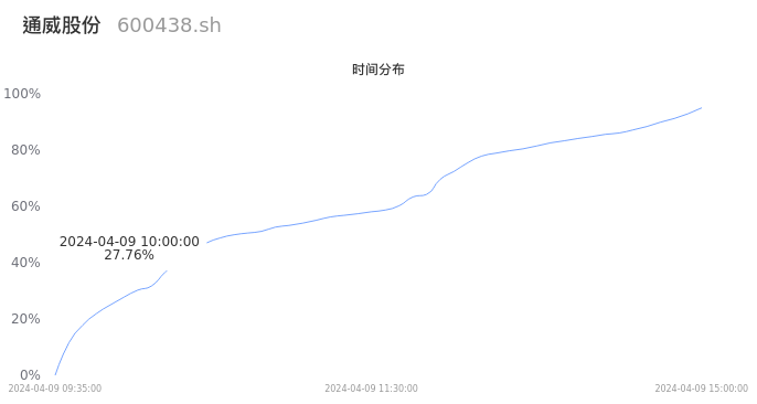 600438通威股份2024年04月09日成交27.03万手,成交金额6.57亿元,相较昨日缩量18.36万手,换手率0.60%,成交清淡。