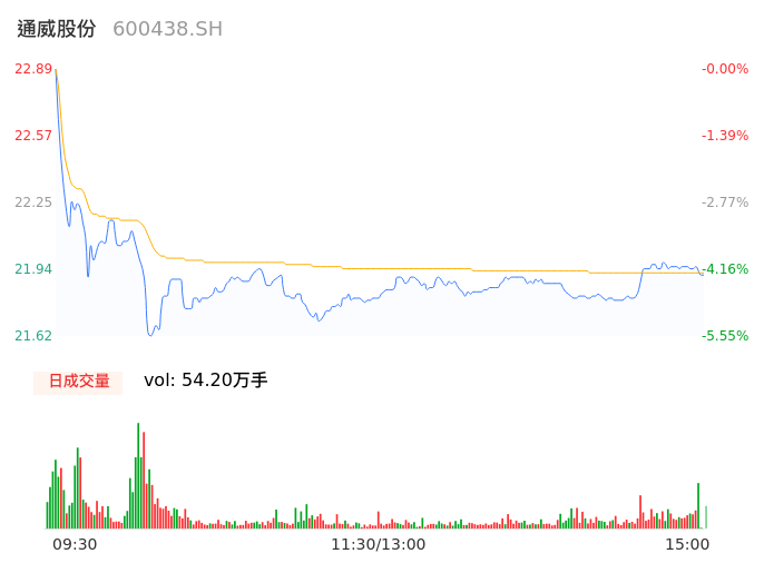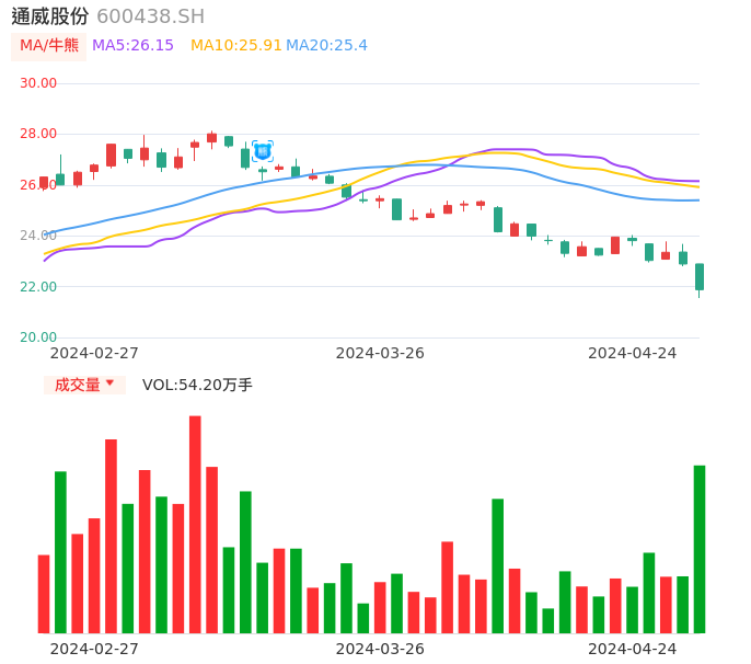 04月24日,通威股份收报21.88,股价涨幅-4.41%,成交金额11.88亿元,换手率1.20%。