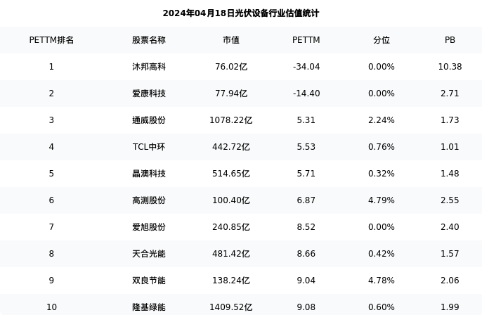 从估值角度看:通威股份最新市盈率PETTM为5.31,在行业内排名1/58,处于2.24分位。